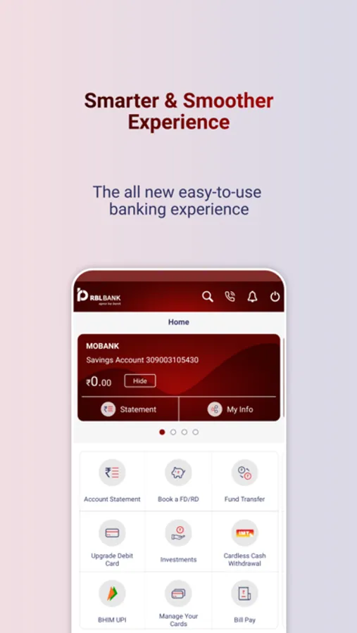 · A qualified Savings Bank account with internet banking registration is required to access RBL MoBank.