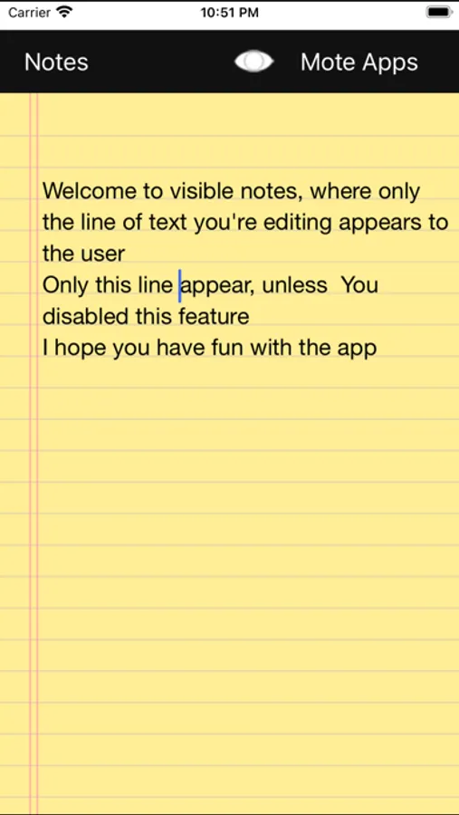Invisible Notes is a notes app just like any notes app, but with one distinguishing feature:- It hides the text you are typing, expect for the line you are currently editing. Of course, there's a button to toggle that feature on and off in case you want to read the whole text you are typing.