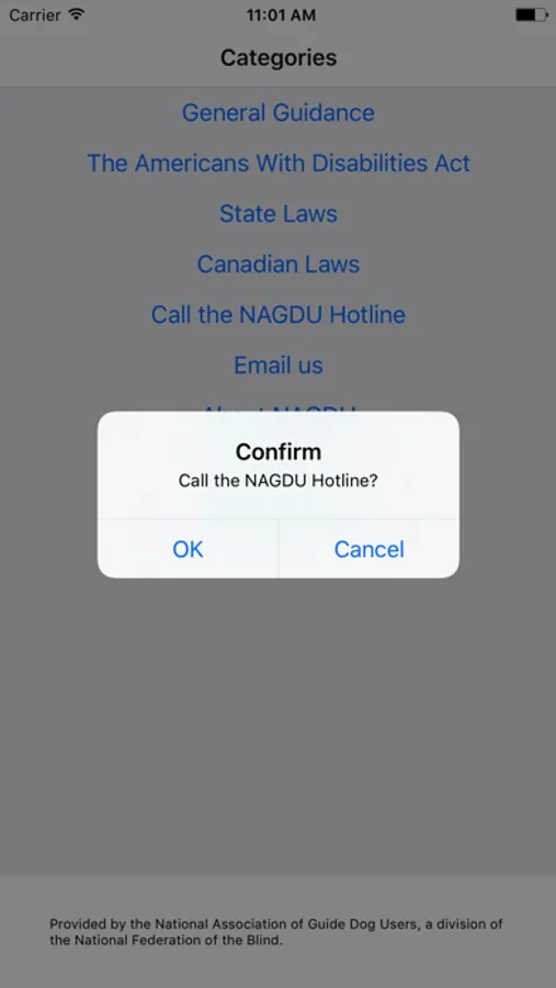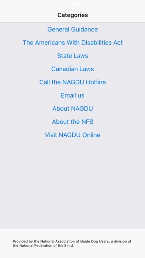 This app is provided as a public service of the National Association of Guide dog users (NAGDU), a strong & proud division of the National Federation of the Blind (NFB).