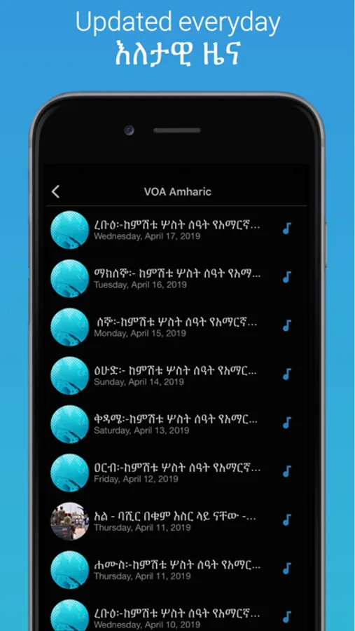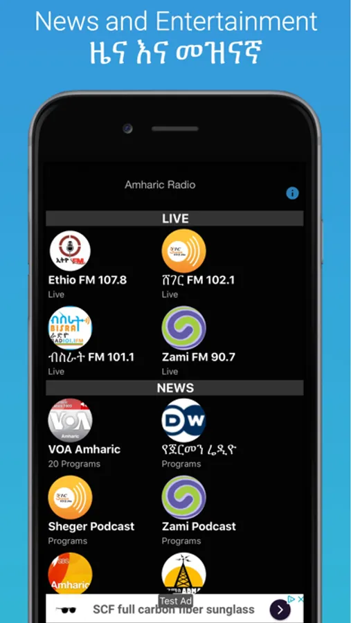 Amharic Radio is a free all-in-one app to listen to Amharic radio programs from around the world. This professionally designed quality application streams the latest news and entertainment content right to your mobile device for free.