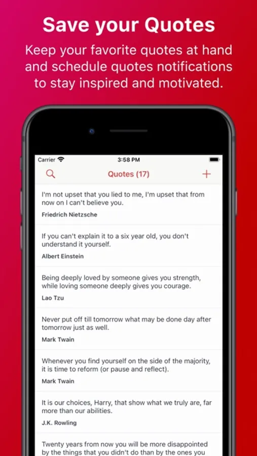 Quotie Pro lets you save all your favorite quotes and keep them organized and at hand. It also sends daily push notifications with awesome quotes to help you keep motivated, focused and inspired through out your day.