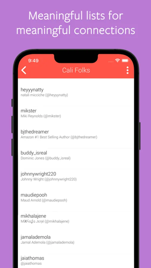 Create lists to organize the people you follow. View profiles on-demand. You can also make your lists public (shareable) or private.