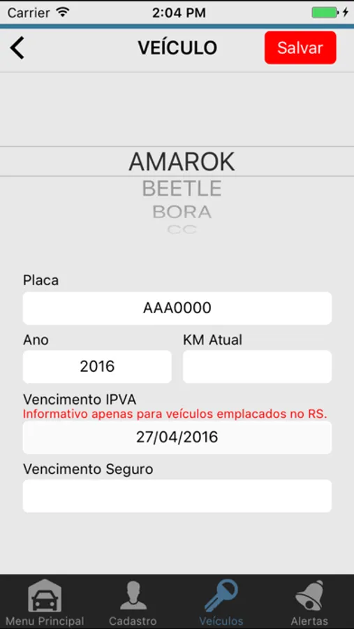 Aplicativo da rede de concessionárias Volkswagen Guaibacar. Baixe agora mesmo o aplicativo e tenha acesso a agendamento on-line, consulta de histórico de serviços realizados e avaliação do seu veículo. Além disso a Guaibacar ajudará você a lembrar das manutenções, vencimento da sua habilitação, vencimento do IPVA e seguro do seu veículo.