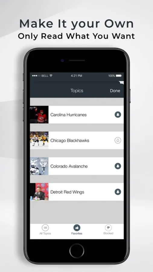 * Customize your feed - choose your favorite topics, the topics you want to block from your feed, and the topics you want to get notifications about