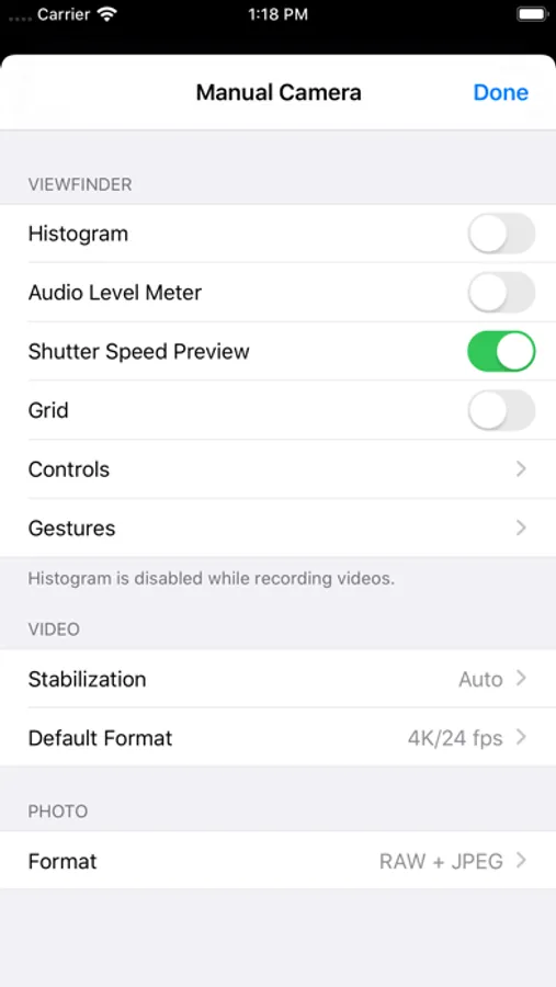 Capture photos or videos with precise control over focus, exposure, ISO, shutter speed, white balance, and flash level.