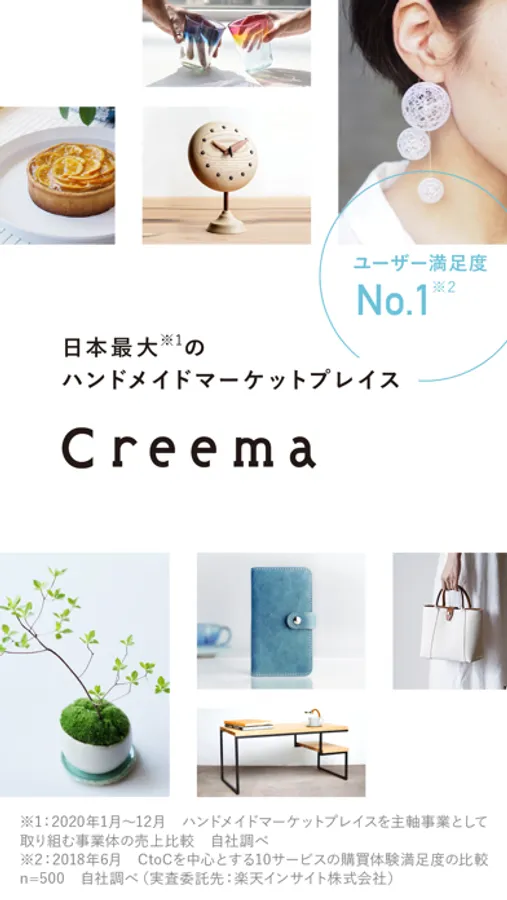 17カテゴリー・1400万点以上のクリエイター作品が買えるマーケットプレイス、Creemaです。