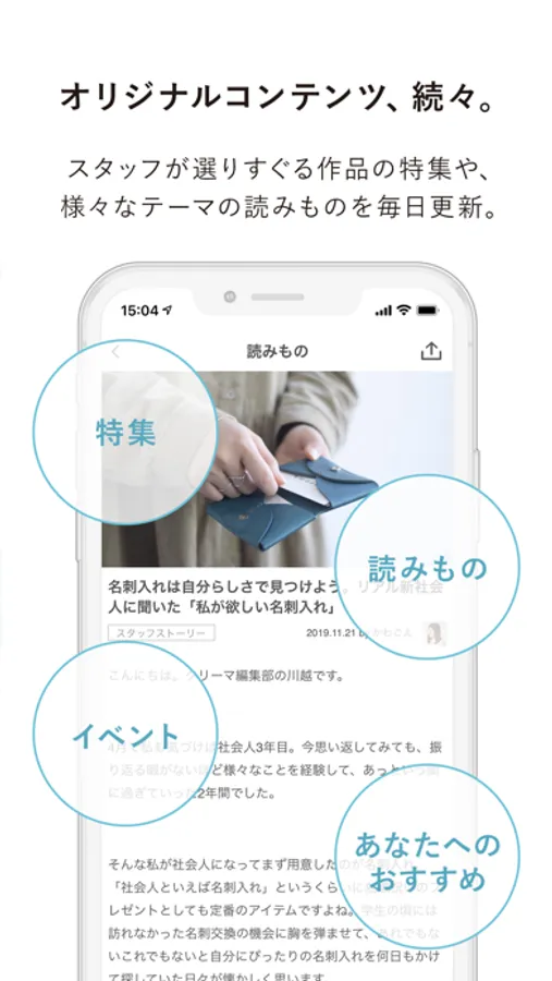 作品をその場で撮ってその場でそのまま出品できてしまうのもアプリならではの魅力。写真の補正機能やプレビュー機能もついているので、初めての方でも自分の作品を簡単に、素敵に販売することができます。