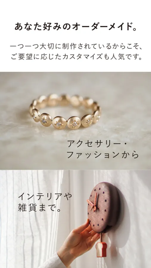 名入れやサイズ調整はもちろん、あなたの理想の作品を作家さんと一緒に作るオーダーメイドも、大人気です。