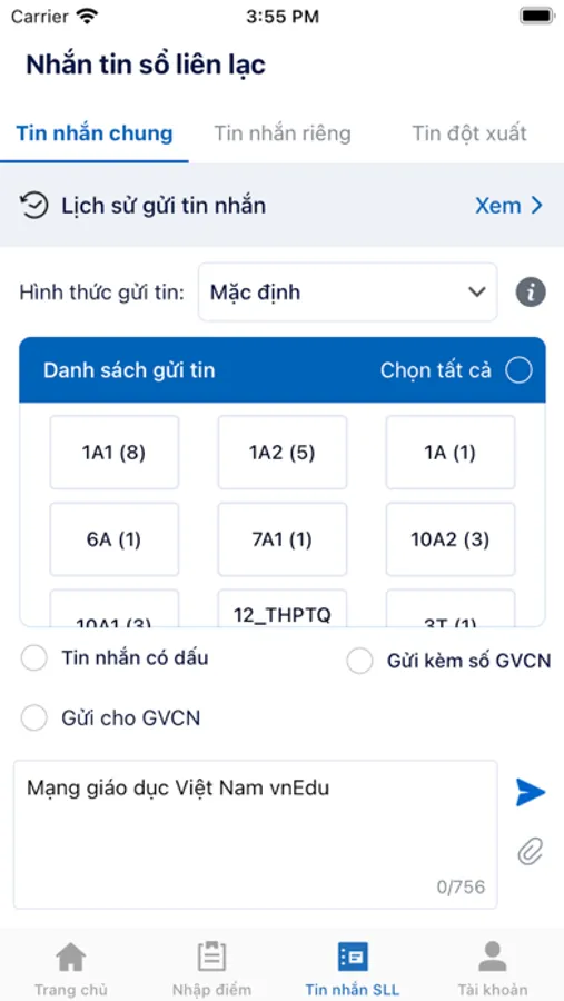 - Nhận và gửi các tin nhắn Điều hành và tin nhắn Sổ liên lạc.
