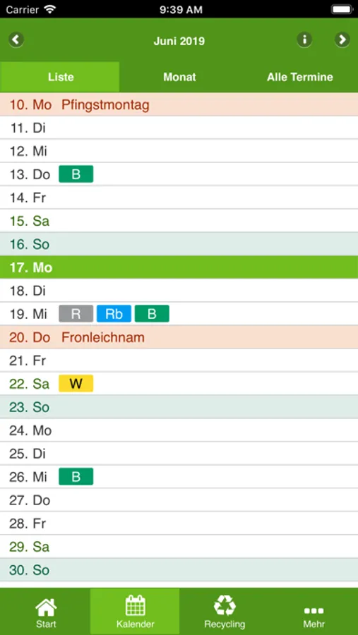 * Vergessen, die Tonne herauszustellen? Mit der Erinnerungsfunktion die Termine für die Leerung in den eigenen Kalender übertragen.