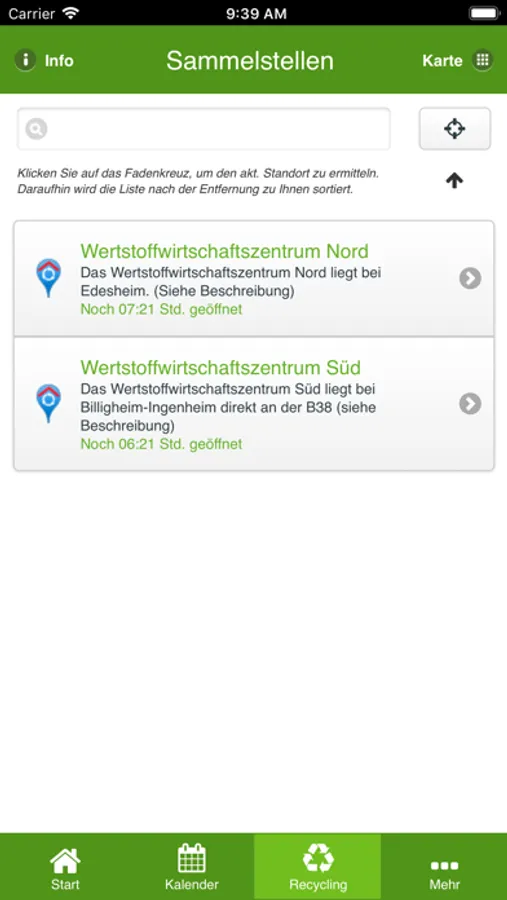 * Standortabfrage zum noch leichteren Finden der nächsten Sammelstelle.