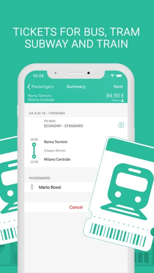 Get on board all Italian trains with the simplest user experience ever. Buy your train ticket. Entering the dates and departure and arrival stations to reach all destinations with regional and high-speed trains.