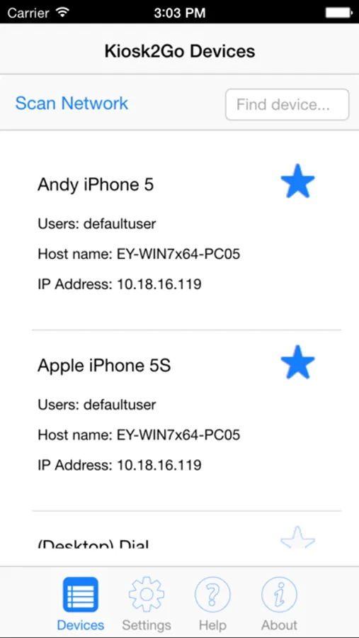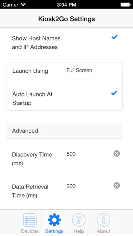 This application scans the network for MediaMatrix nodes running Kiosk2Go, and presents a list of all the Kiosk2Go devices. You can tap a device to open Kiosk2Go full screen, in Safari or in Chrome.