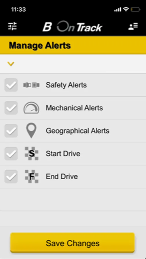 • Receive alerts on safety and mechanical events such as harsh turns, brakes, strong accelerations, over speed, drive in high RPM, alerts on engine’s high temperature and other mechanical failures