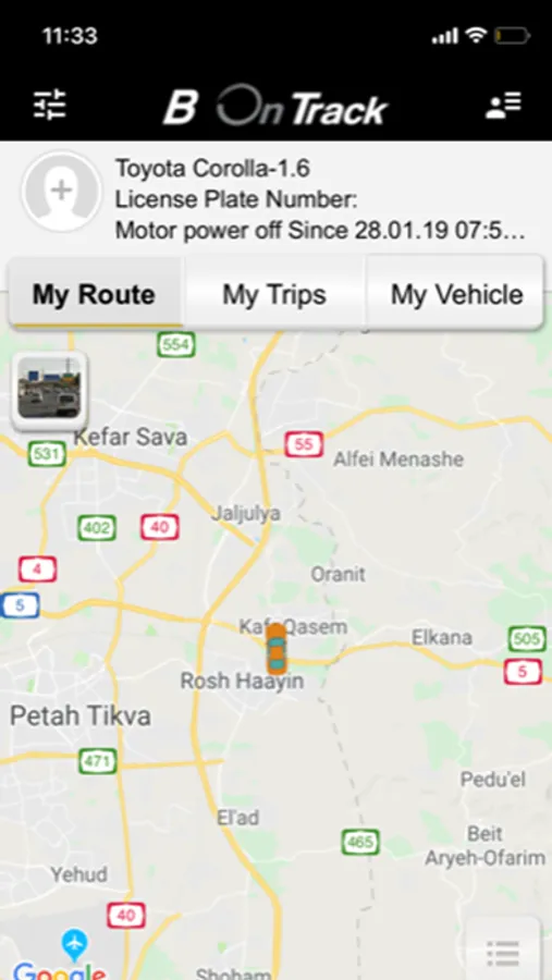 B On Track service is a combination of the device B On Track that is self-installed in a vehicle and an application that shows the vehicle's data that its received from the device.