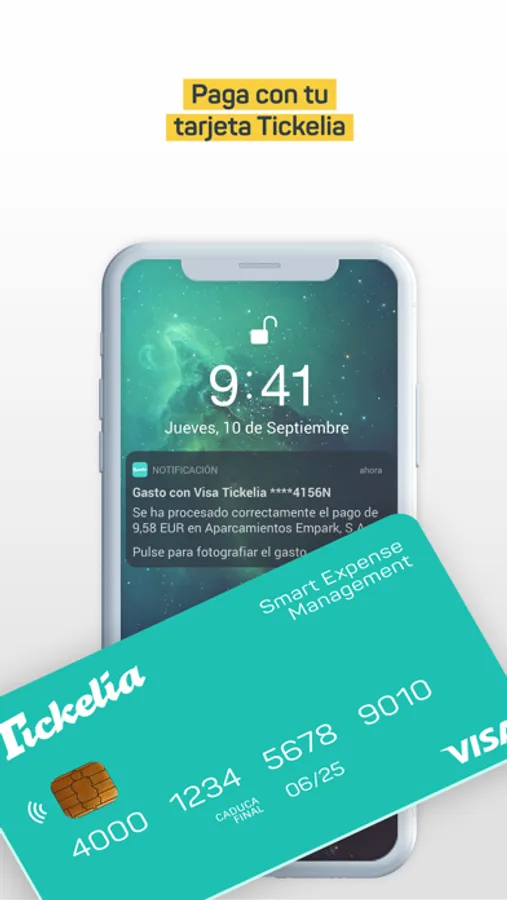 3. Paga con la tarjeta Visa Tickelia y recibe automáticamente los movimientos para fotografiar el tique fácilmente.