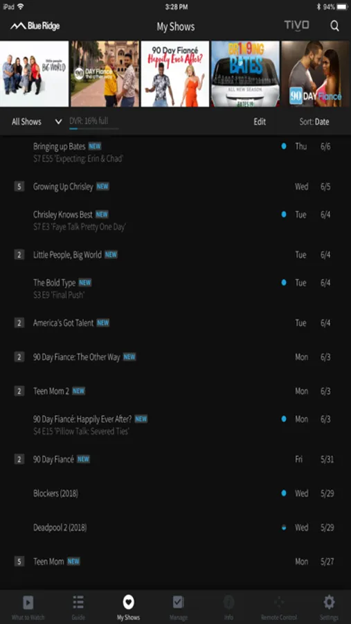 Blue Ridge Go TiVo app! Schedule recordings on the go. Watch recordings*