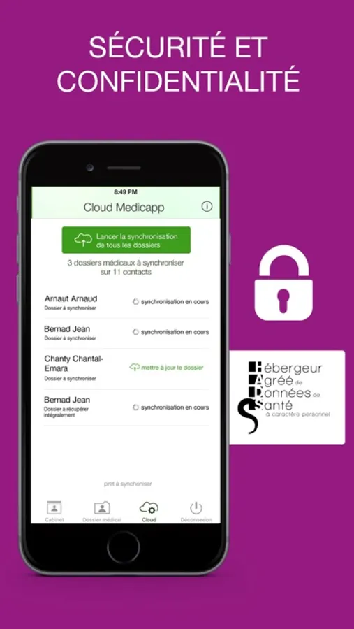 Sauvegarde et restauration des données de vos patients se fait sur le Cloud Medicapp chez un Hébergeur Agréé des Données de Santé (HADS), répondant à tous les requis légaux en matière de protection des données de santé.
