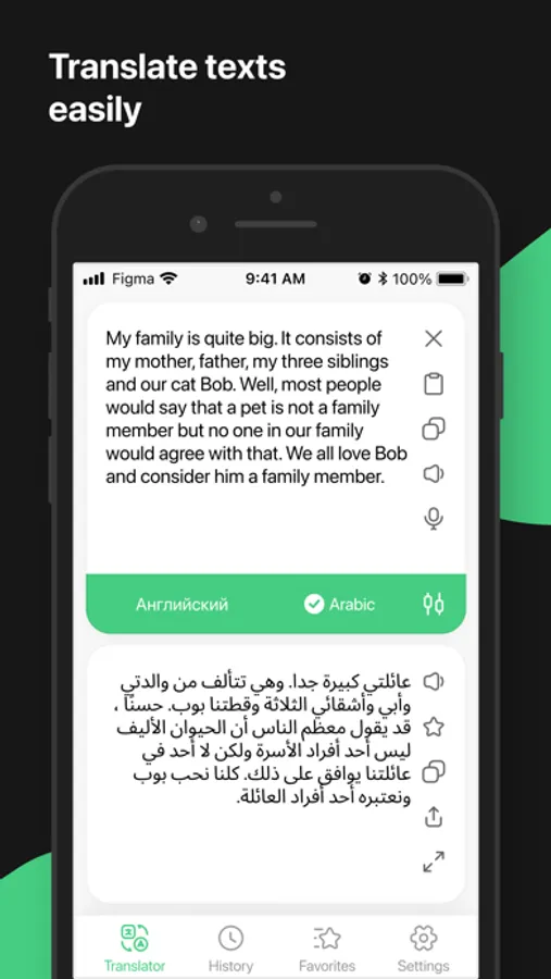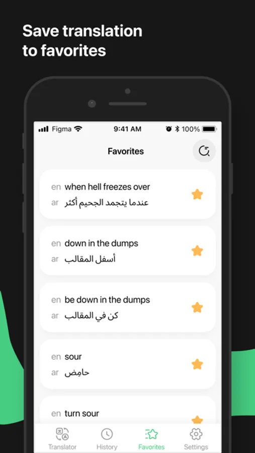 With this translator you can easily translate words and text from Arabic to English and from English to Arabic. You are able to translate words and even sentences, in just a split second.