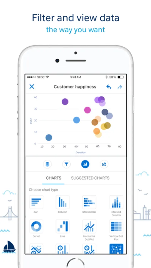 CRM Analytics lets Salesforce users take their data with them everywhere. CRM Analytics transforms the way your company uses data, making every employee more productive so you can grow your business faster. And with the CRM Analytics app, any Sales Cloud or Service Cloud user can instantly get relevant answers and Einstein-powered predictions in a Salesforce native mobile experience. With actionable analytics in the palm of your hand, business will never be the same.