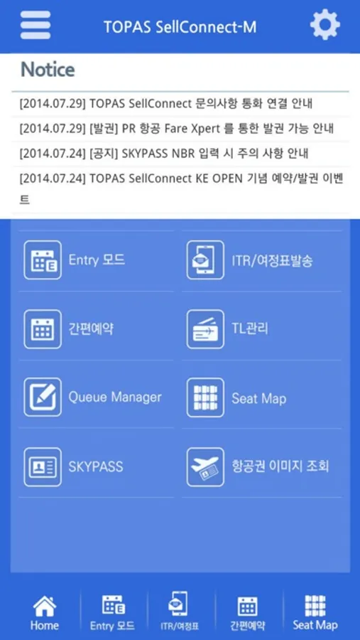 TOPAS SellConnect-M 을 통해 항공권 예약, ITR 발송, TL 관리, 사전좌석배정 및 SKYPASS 정보 조회/적립등을 원스톱 서비스로 이용하실 수 있습니다.