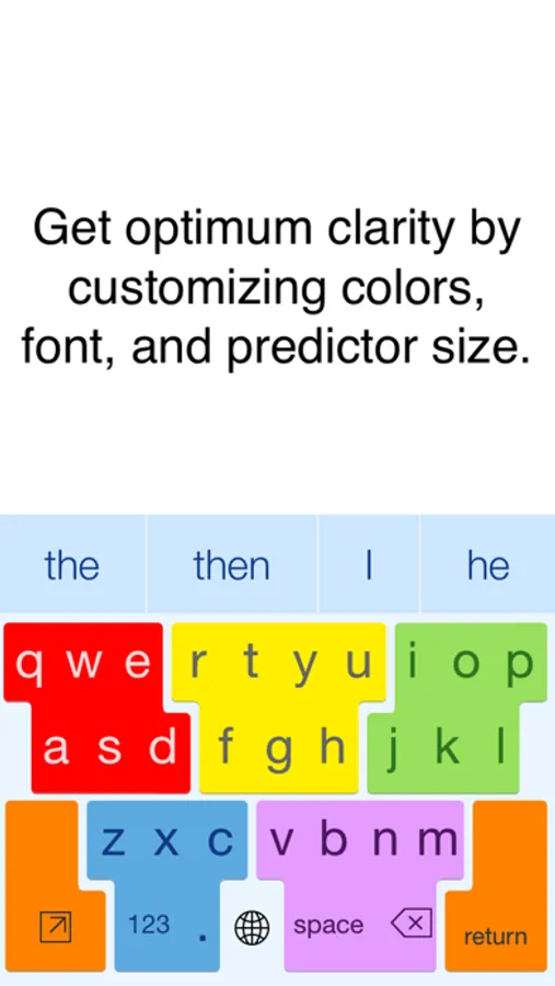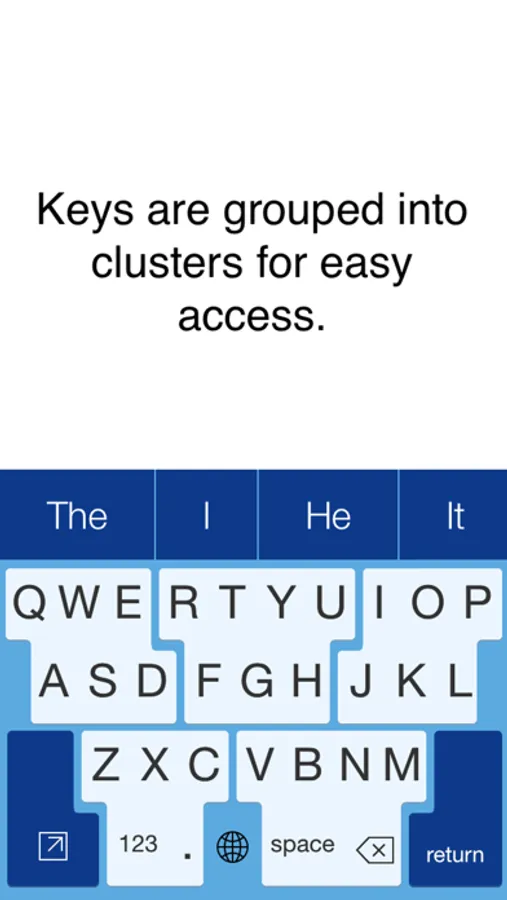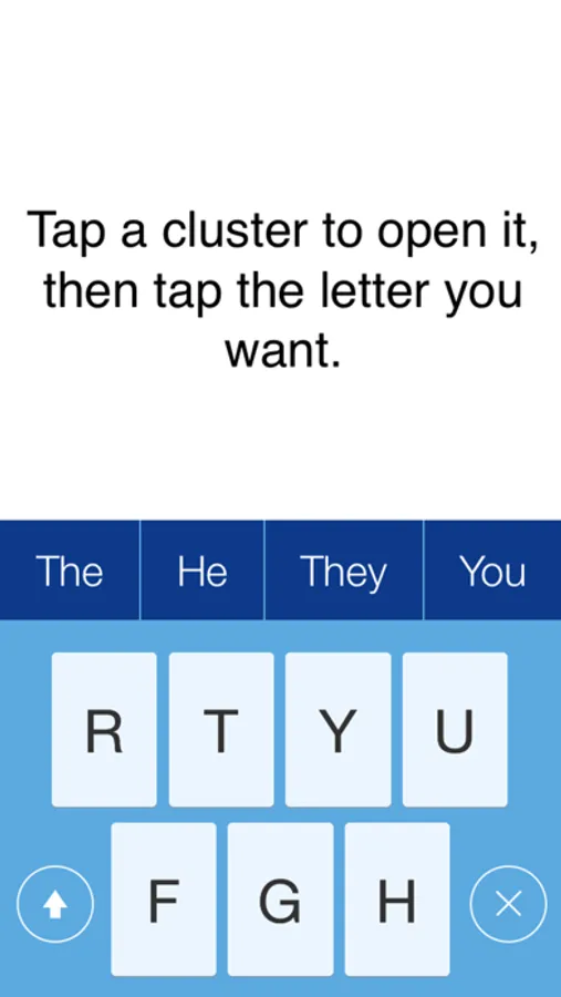 The unique design of SuperKeys gives you just 7 clusters to target instead of over 30 small keys! Just tap the cluster containing the letter you want, then tap the letter in the enlarged cluster. There’s no double-tapping, no essential swiping, and no learning required.