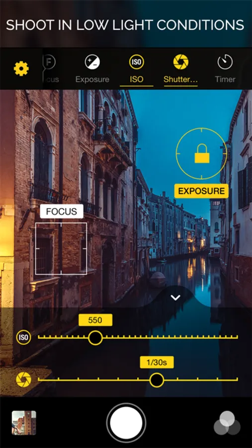 * Smart Focus & Exposure control - set and adjust them manually before taking a shot: