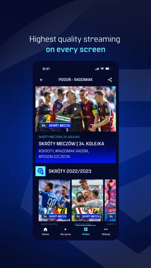 We've listened to your feedback! With our latest app, you'll experience unparalleled convenience and excitement as you feel the emotions of PKO BP Ekstraklasa. Join thousands of football fans and relive the thrill of a match day, all conveniently packaged, all in stunning quality, specifically for you to enjoy.