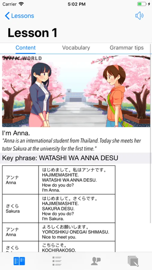 "Easy Japanese" is a program of Japanese language lessons produced by Japan's public broadcaster, NHK WORLD RADIO JAPAN. You can learn basic grammar and useful expressions through lessons designed in audio-drama style.