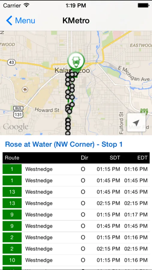 Kalamazoo Metro Transit’s “Track My Bus” app will assist with locating your bus and finding the time it will arrive at your bus stop. View real-time Kalamazoo city bus locations. See where your bus is located on it’s route.