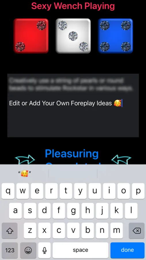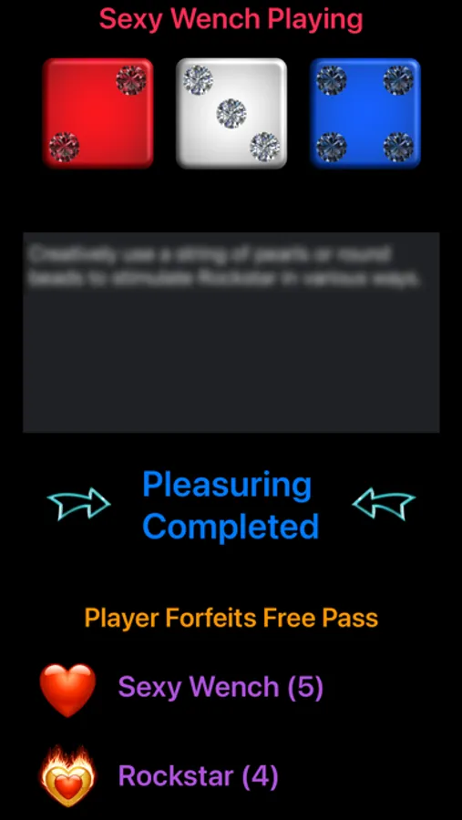 Always use safer sex practices and common sense when performing or engaging in any sexual activity. The sample activities in the game are designed for couples in a monogamous sexual relationship. All the foreplay and sex play ideas are intended to inspire your own erotic creativity so you can enhance your relationship with more pleasure and intimacy. They are only sexy suggestions for you to adapt and perform at your own risk and discretion.