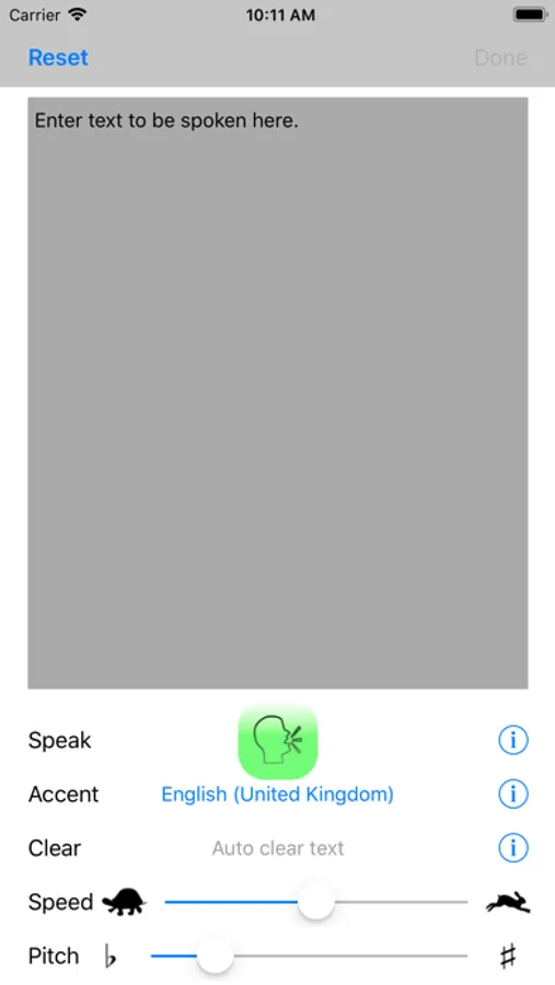 Talk to Me speaks aloud any text in any accent. You can vary the speed and tone of the speech so you can hear what it would sound like spoken quickly by a woman or slowly by a man (or vice versa!). Enter as much or as little text as you want.