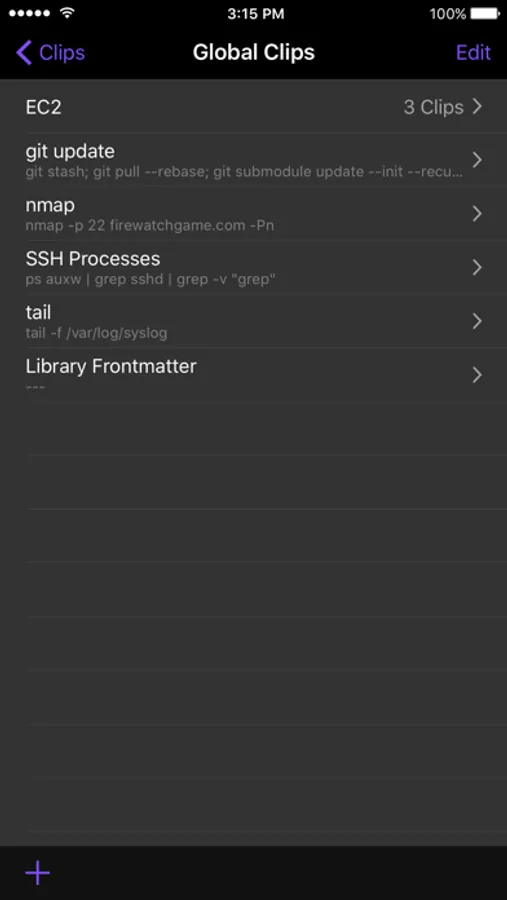 Put your most-used commands and text bits into clips and access them with a single tap via Prompt’s keyboard bar. Clips can be stored globally or per-server.