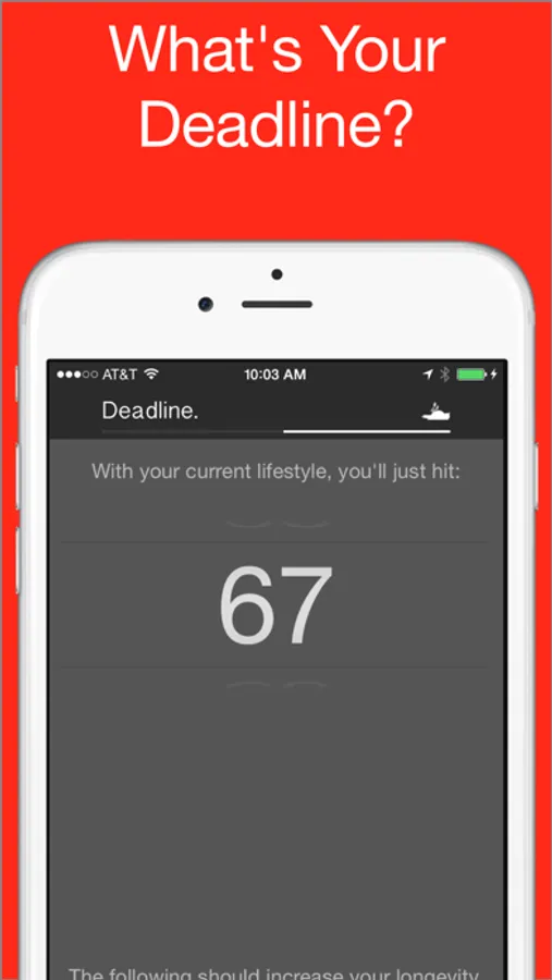 *Deadline uses statistical information to show an estimated age, but of course no app can really accurately predict lifespan--there are just too many variables! Consider this a way to motivate yourself to be healthier (and always consult a physician as necessary).