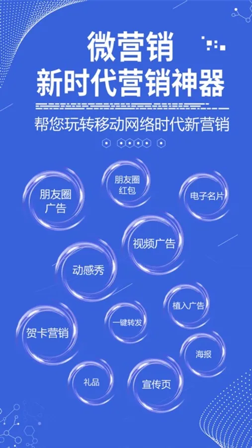 微营销(marketing)是专为微店主、各大平台卖家,有商业营销需求的企业、商家、微商等提供的营销推广工具,专业的企业、商家、电商、微商微信营销、获取加粉客源神器,更是一个做图、做视频、做海报等的营销推广助手。在微营销中设定好自己的广告,就可以与大家交换广告展示了,发布或是转发微营销中的文章或是活动至微信朋友圈等就会自动在所转发的内容前面添加上你设定的广告,更可以与大家交换广告展示,分享朋友圈等资源,整合各类营销资源,高效的营销全链条,达到了以小博大、以轻博重的营销传播效果。微营销里面集成了丰富的营销类图片海报、视频、网页等模板,可以很方便的利用模板制作你所需要的营销素材,利用营销等各类具体形式,发布、转发社交朋友圈内容自动加入你自己的广告,达到快速传播的手段,你也可以自己组织发布各类有趣的生活常识、搞笑文章等或是与你产品相关的知识普及文章,微营销自动为您添加你指定的广告,只要你的内容足够有趣、新颖,能达到快速传播内容要求,你的广告也就跟着朋友圈的转发帮你传达出去,小工具,大营销。实在的数据精灵,充分利用你朋友圈的资源,在不知不觉中帮你做了广告。