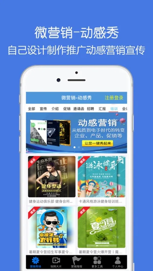微营销可以在线自助制作动感营销秀,视频大片秀等营销素材,不需要懂设计不需要懂网络同样可以制作出漂亮精美的H5页及营销宣传视频。