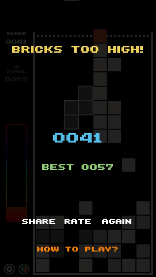 - If any row is filled with 8 bricks, all bricks in this row will be crushed. And there will be a obvious timing count increment.