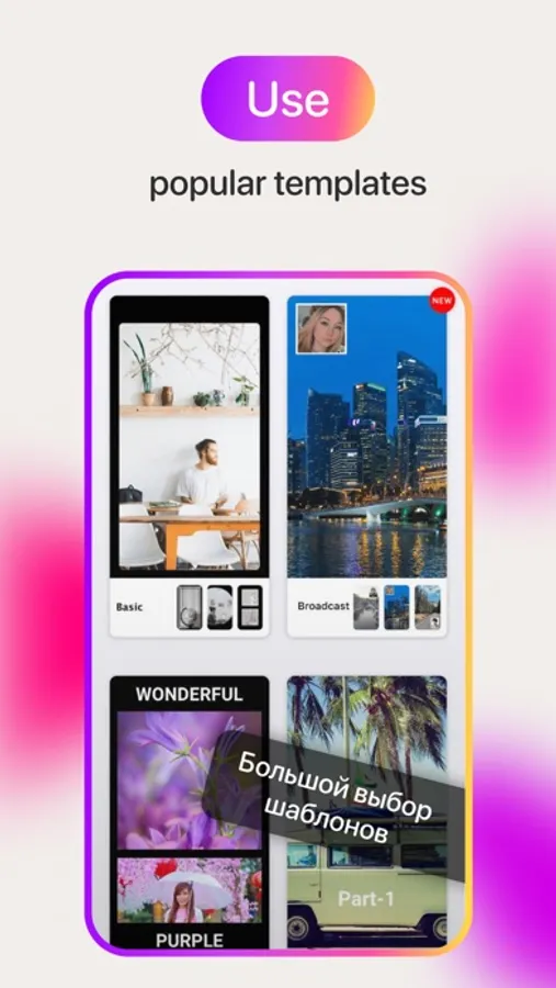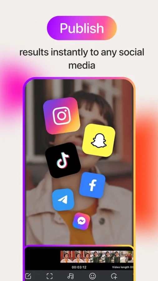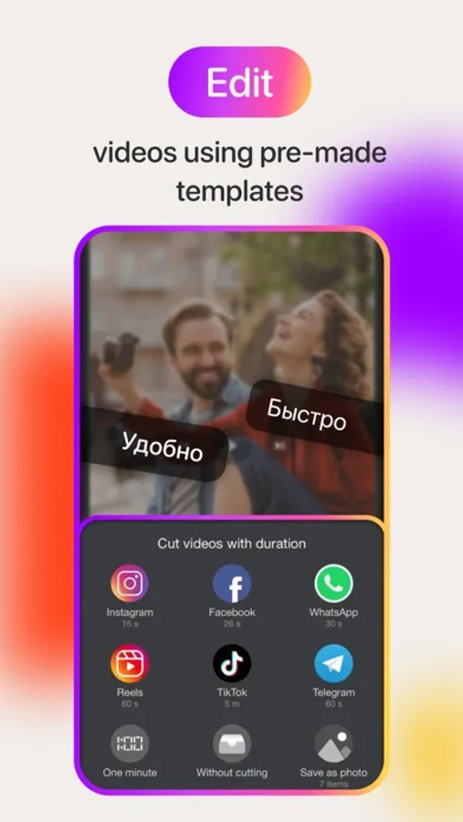 Just import a long video any! length, choose a layout, stencil or mask, add a stickers, text or music, and let CutStory cut it up and save in your smartphone's Camera Roll as fragments of 15 seconds or any other length, in chronological order.