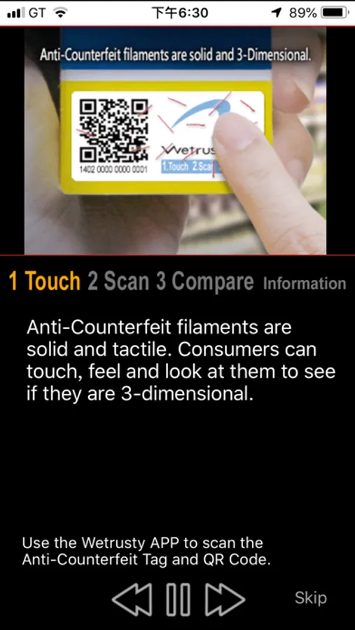 Wetrusty APP allows customers to use smart device to quickly scan the Tag. This APP interface is instinctive and user-friendly—easy and fast to verify product authenticity without getting lost in complicated instructions and web pages.