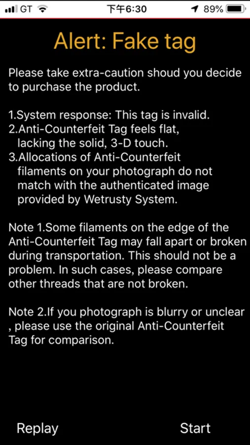 ※ If your photograph is blurry or unclear, please re-scan, or use the original Anti-Counterfeit Tag for comparison