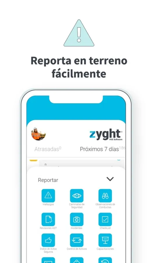 ZYGHT permite gestionar de forma escalable los procesos en terreno, tales como: inspecciones; observaciones de conducta; check-lists; revisiones AST; hallazgos georeferenciados; inspecciones de activos y seguimiento a las acciones correctivas en tiempo real.