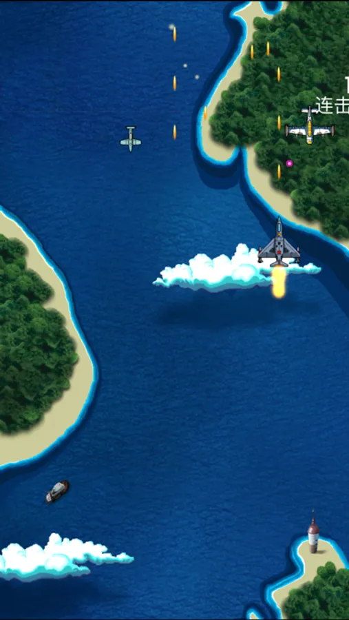大量采用粒子效果,画面更华丽。从飞机尾焰,到敌机爆炸,到中弹冒烟,全部采用粒子效果实现,更流畅更绚丽。