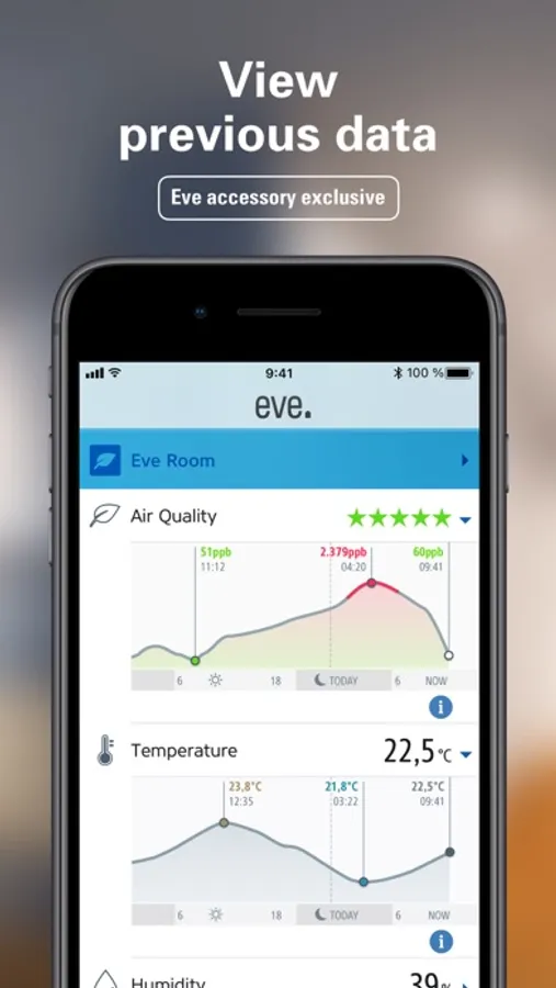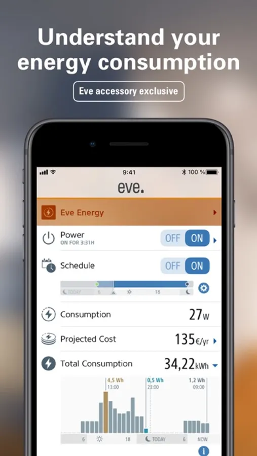 The Eve family of Matter- and HomeKit-enabled devices puts your home at your fingertips. Control your lights, appliances, radiators and other connected comforts – with your iPhone or just your voice. Easily create automations for carefree convenience around the clock. And gather data on temperature, air quality, humidity, energy consumption and more.