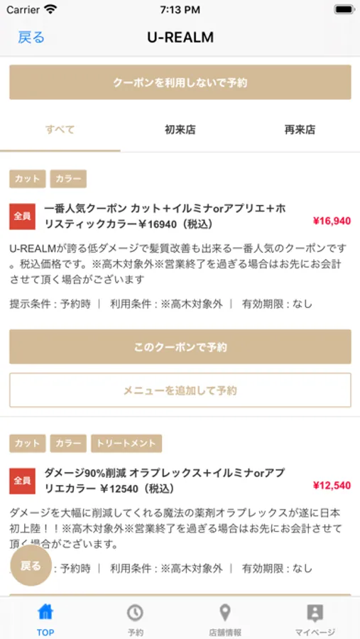 ヘアサロン「ユーレルムU-REALM」の公式アプリです。