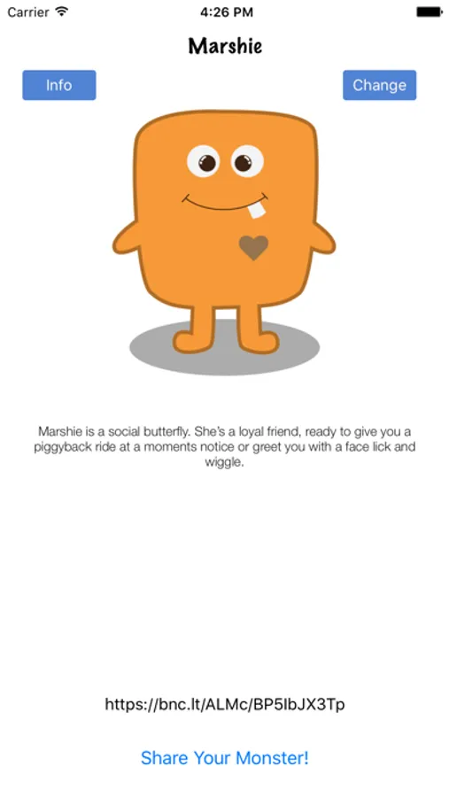 Use Branch links to share your monster over text, email, or on Facebook and Twitter. Your friends will see your creation when they open the app, even through install. You’ll have so much fun with your new pal, you’ll want to share him on every platform.