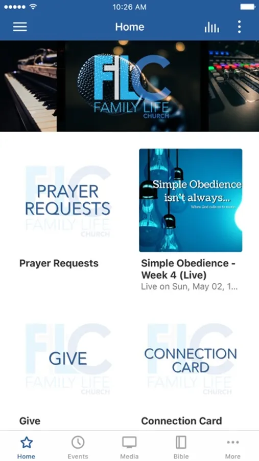 The Family Life Church of Amarillo app was developed with the Subsplash App Platform.