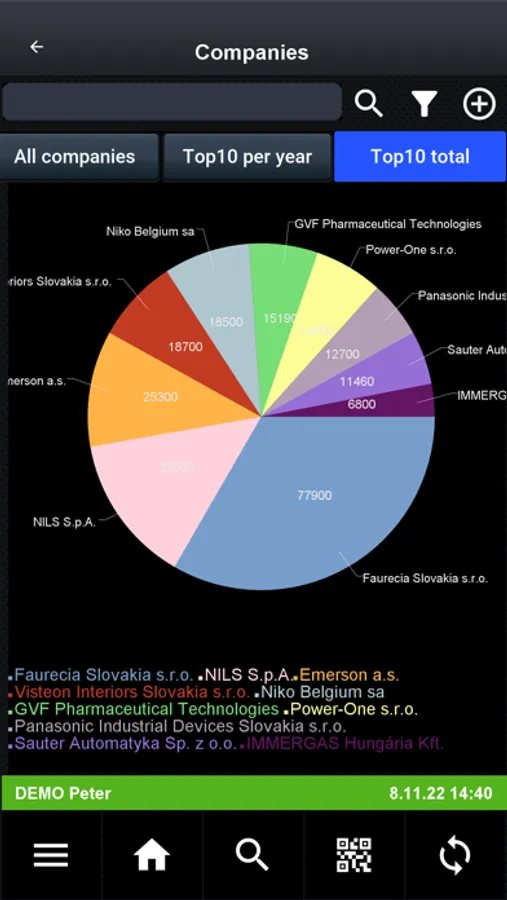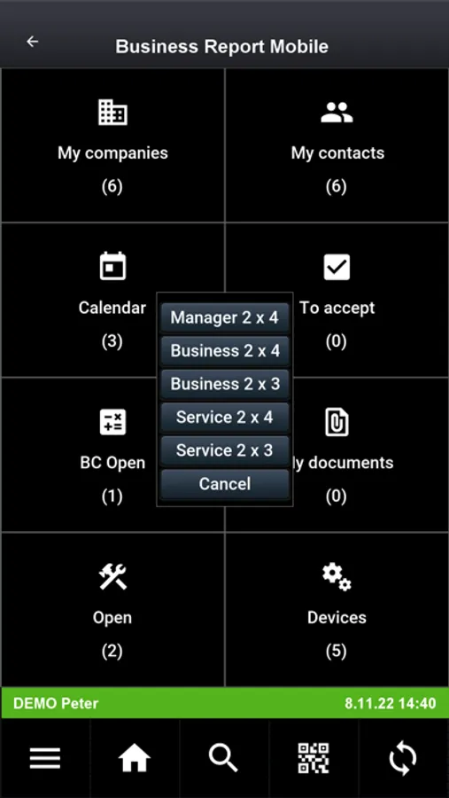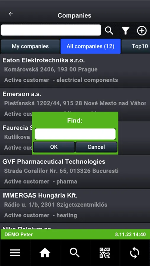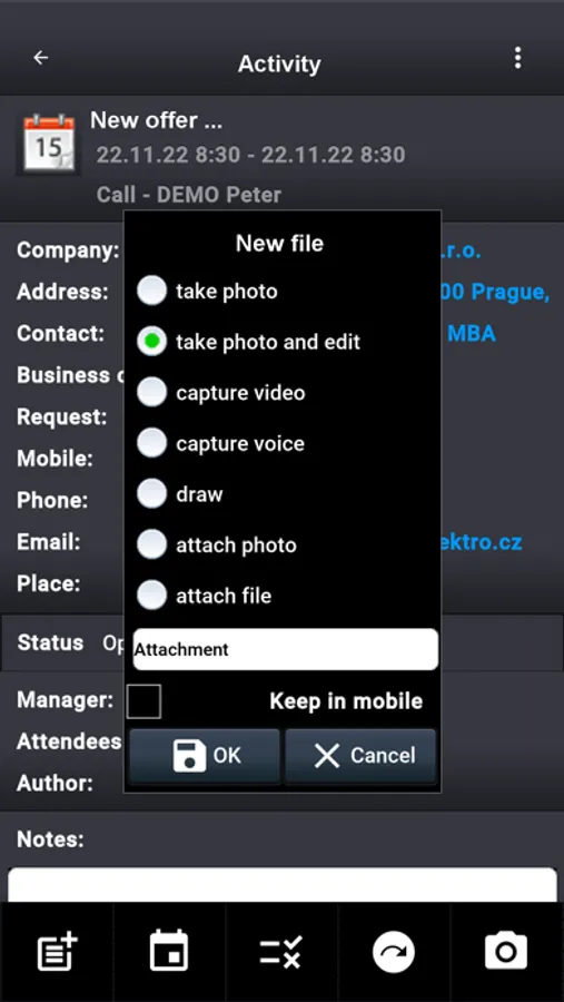 • Some functions (settings, synchronization with server, PDF work reports, invoices import from ERP, financial reports ...) are not included in the demo version, because they require connection to services of the main app.