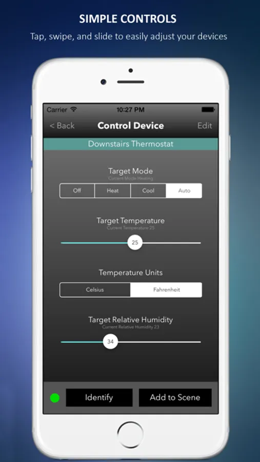 * Tap, swipe, and slide to easily adjust devices