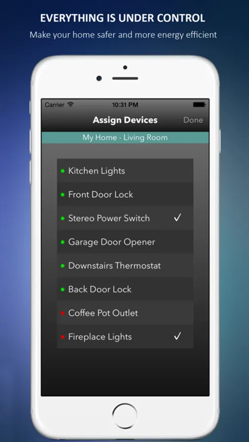 * Control lights, switches, outlets, thermostats, garage door openers, locks, etc. with more device types becoming available all the time