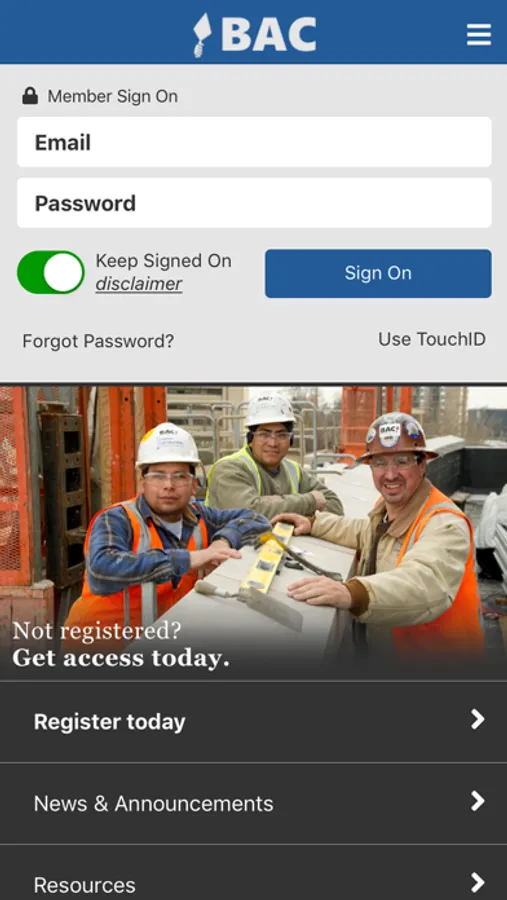 International Union of Bricklayers and Allied Craftworkers mobile application for members. Members can log in to their online account, access resources, and interface with their Local and International Union.
